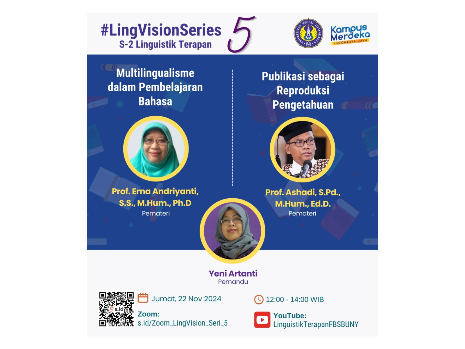 Program Studi Linguistik Terapan, FBSB UNY menyelenggarakan kegiatan Webinar Lingvision #Series 5 yang akan dilaksanakan pada: